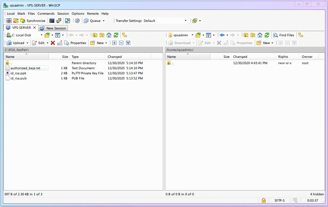 在右边(VPS 中)点击右键并新建文件夹,起名 .ssh (注意有一个.)
